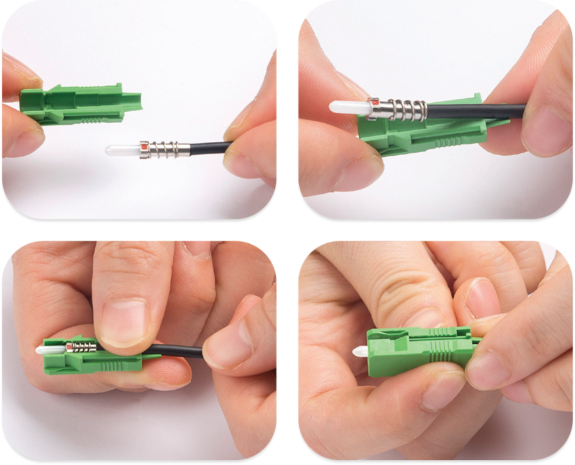 The product is equipped with OPTOMER’s patented OSC-LC divisible connector, installed on a blue 0.9 mm diameter fiber optic cable. This connector allows for quick assembly without the use of a fiber optic fusion splicer, while maintaining full compatibility with standard LC adapters. Its compact design makes it ideal for locations with limited installation space, significantly simplifying the installation process and reducing the time required for completion.