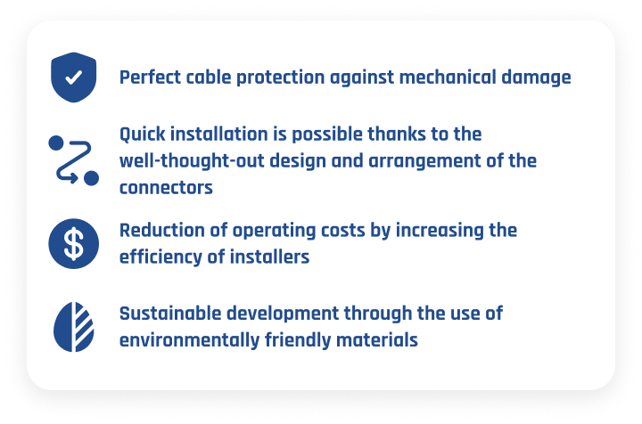 Reels facilitate the easy use of optical outlets and connectors that have divisible outer bodies. Installers can effortlessly connect cables to systems without needing to disassemble them beforehand. This accelerates the installation process and enhances user convenience. Thanks to access to the reel’s interior, each product can be equipped with additional installation accessories.