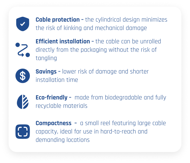 Optimal cable protection – the cylindrical reel design minimizes micro-bending and mechanical stress