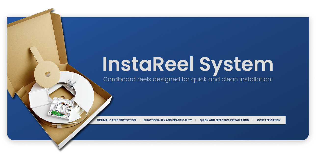 The system of reels has been optimized to enable quick installation of subscriber connections, seamless integration with fibre optic outlets and optical connectors, and efficient logistics – thanks to the use of compact InstaBox-style packaging.