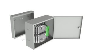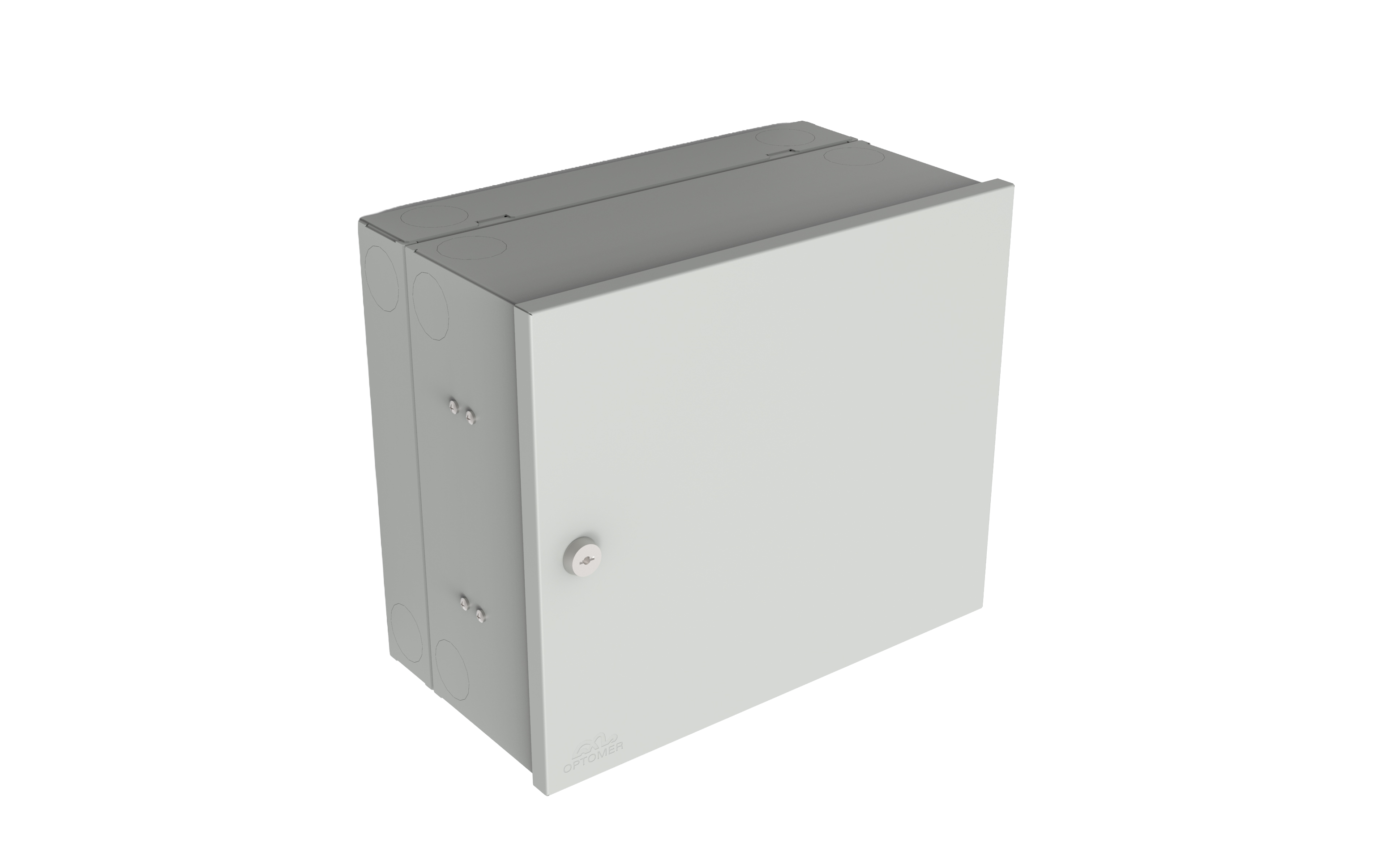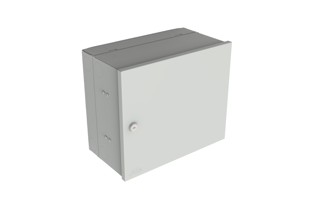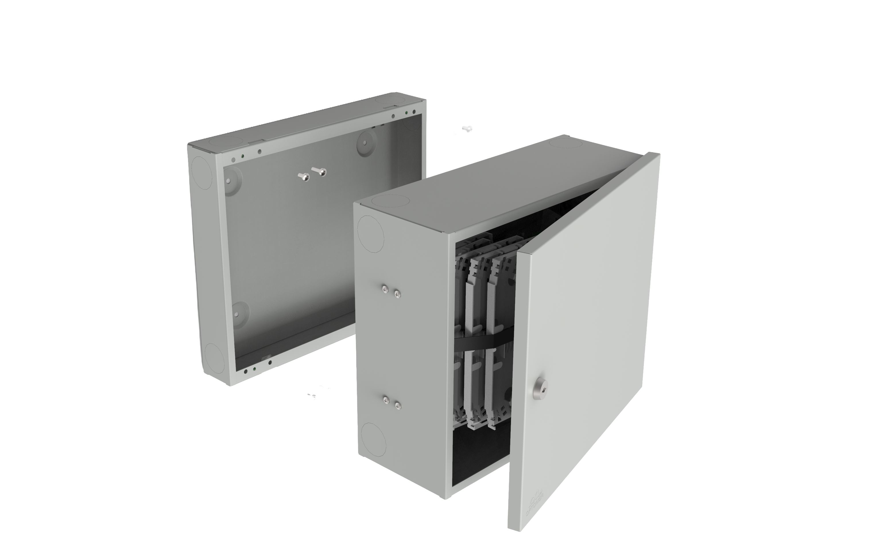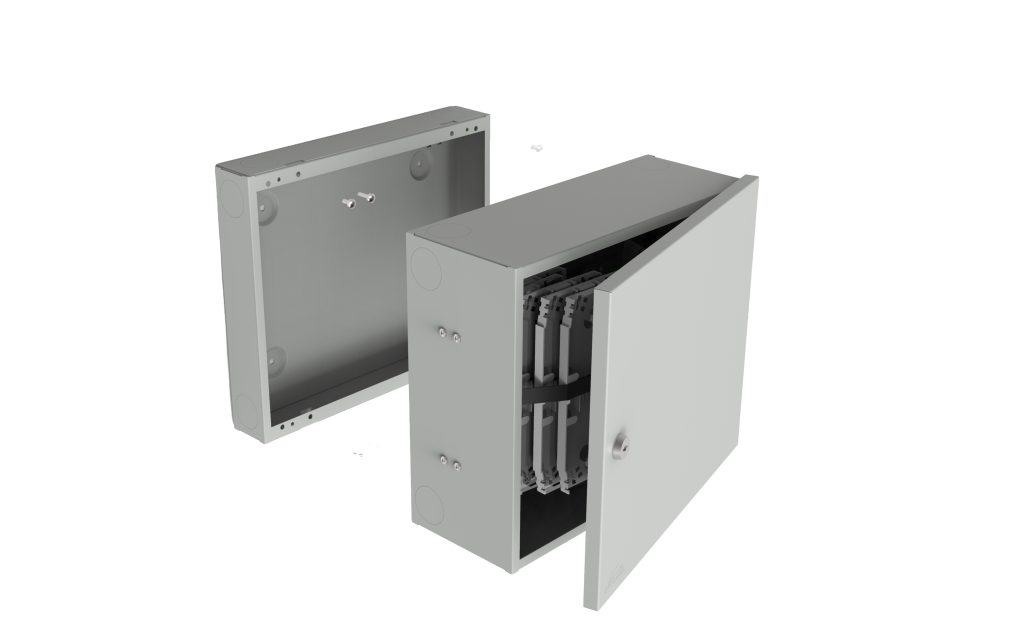 Naścienna skrzynka rozdzielcza przeznaczona do łączenia kabli zasilających z abonenckimi w sieciach dostępowych. Zapewnia wygodny dostęp do kaset i splitterów, czytelną organizację wnętrza oraz dodatkową przestrzeń na zapas kabla liniowego.